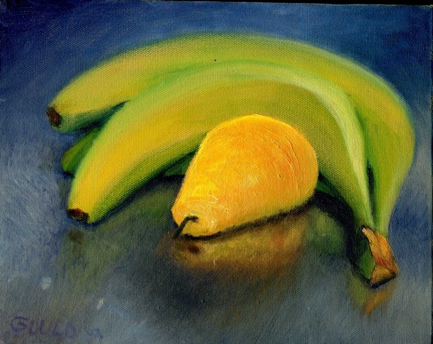 Bananas and pear (2002) oil on canvas (10" x 8")