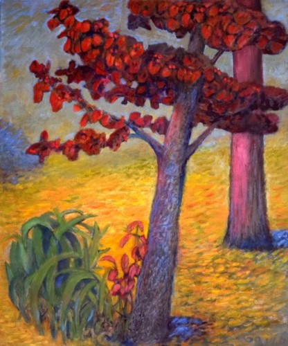 Fall dogwood (circa 2020) oil on canvas (23" x 27.5")