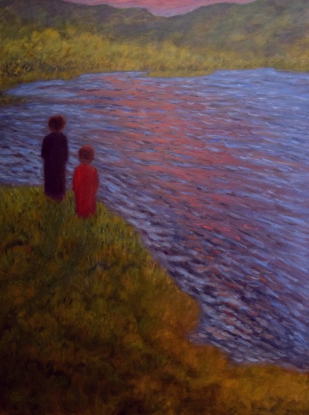 Gene Gould's art -- Late paintings -- BY THE RIVER AT SUNSET (2007) oil on canvas (30" x 40")