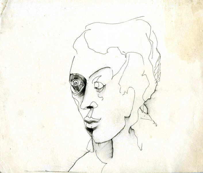 Gene Gould's art -- First period -- MAN'S FACE (1959) ink on paper (10" x 9")