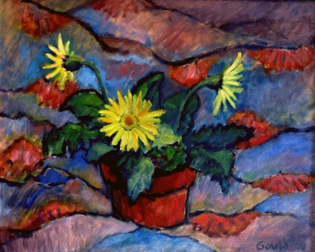 Yellow flowers in pot (2004) oil on canvas (20" x 16")
